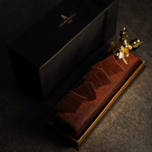 なめらかにとろけるショコラ生地に、香り高い白トリュフを使用しました。ひと口ごとに広がる深い余韻は、赤ワインやシャンパンとの相性も抜群。特別な夜を彩る、大人のための至福のノエルショコラです。